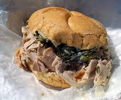 You may even get lucky if you are here early enough to get a Roast Pork Sandwich. Sandwiches start being served on Fridays at 12 and dinners start at 5:00 and end when it's all gone !